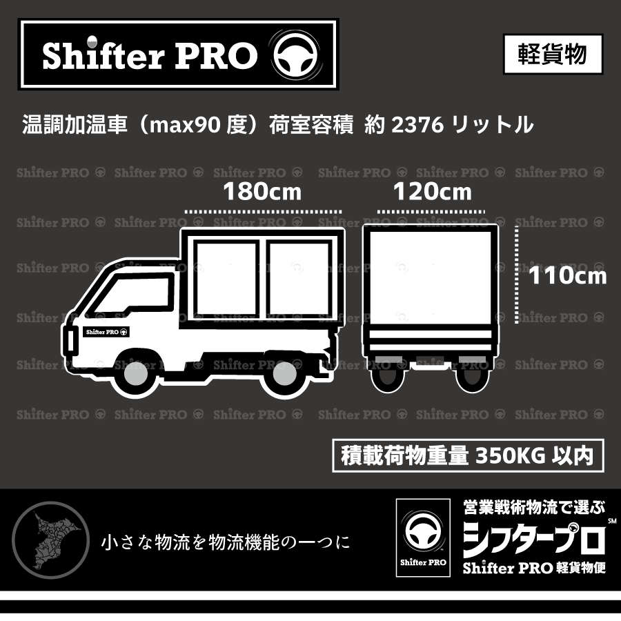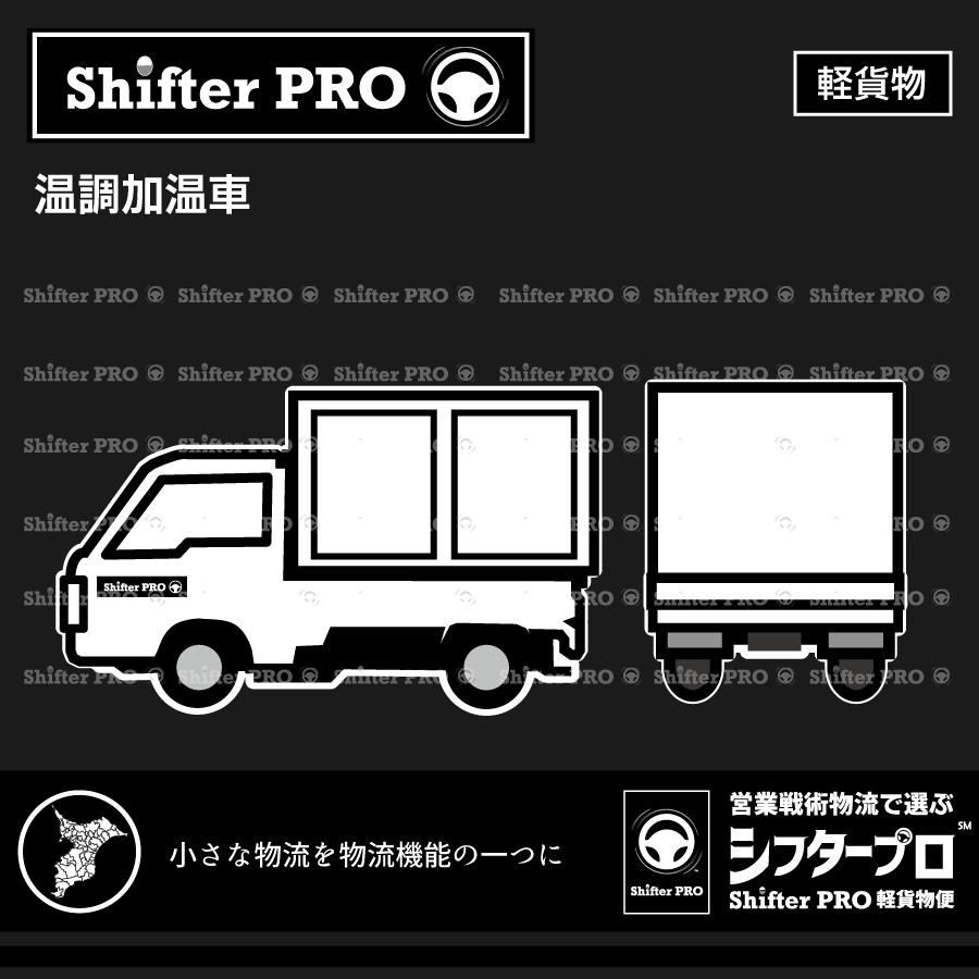 温調加温車(軽貨物)をシフタープロで自己所有しております。千葉県と千葉隣県のエリアで温調加温車を使ったチャーター配送業務に対応しています。