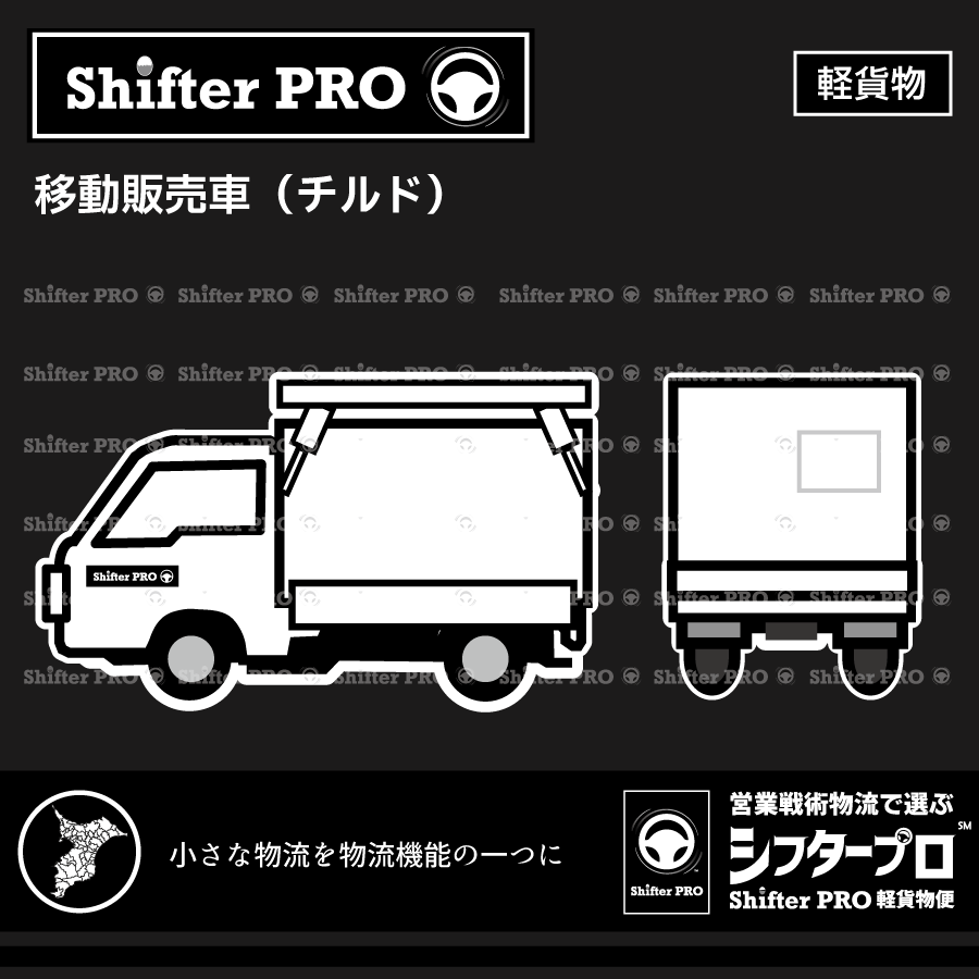 移動販売チルド車(軽貨物)をシフタープロで自己所有しております。千葉県と千葉隣県のエリアで移動販売チルド車を使ったチャーター配送業務に対応できます。